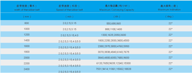 DX型鋼繩芯帶式輸送機是按部件系列進行設計,工作環(huán)境溫度為-25~+40℃,對于高溫、寒冷、防爆、防腐蝕、耐酸堿、防水等有特殊要求的工作場所,應另行采取相應的防護措施。設計者可根據(jù)輸送工藝要求,按不同的地形、工況進行選型設計、計算并組合成整臺輸送機。